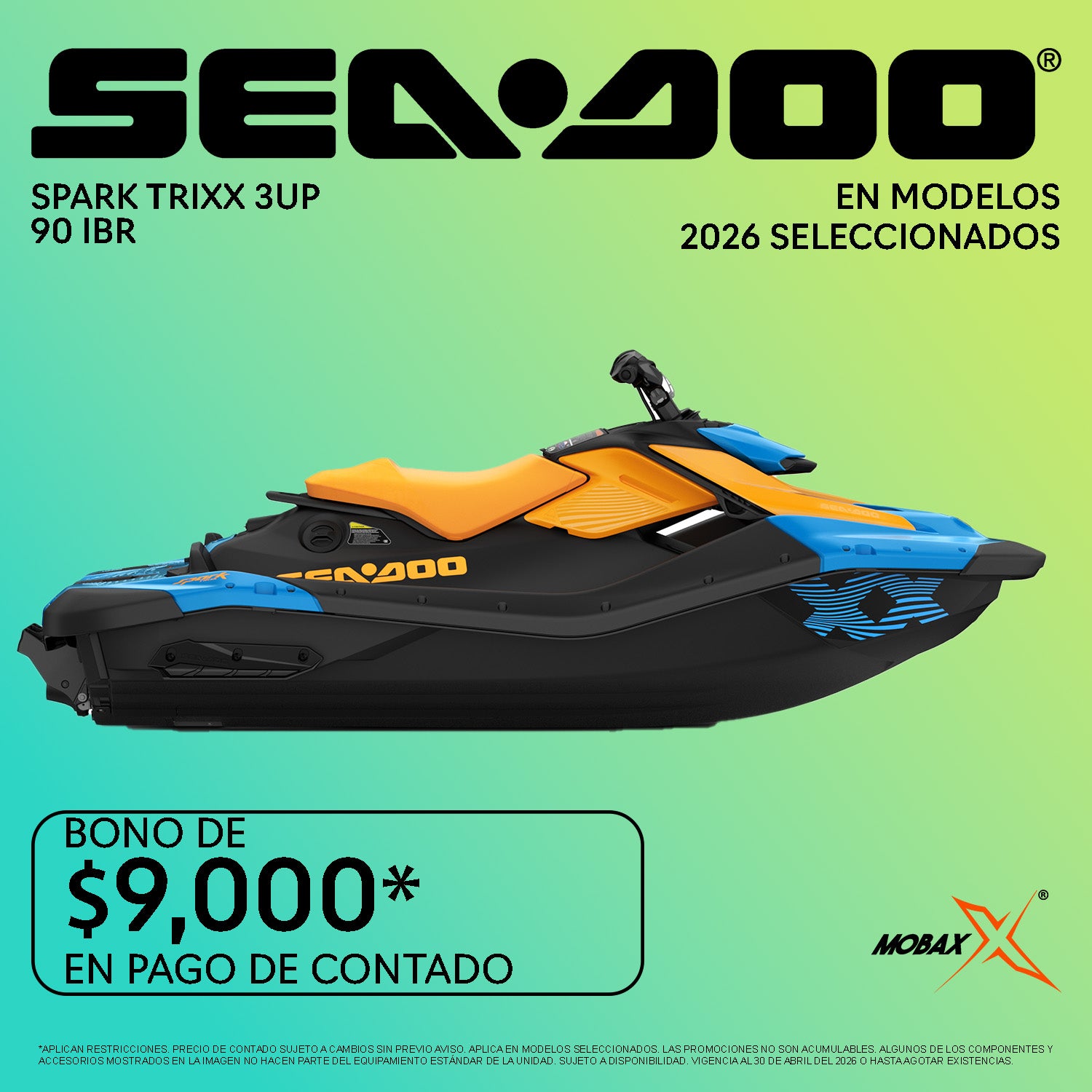 Obtén un bono de $9,000* en pago de contado para comprar tu Sea-Doo Spark Trixx 3UP 90 iBR 2026.