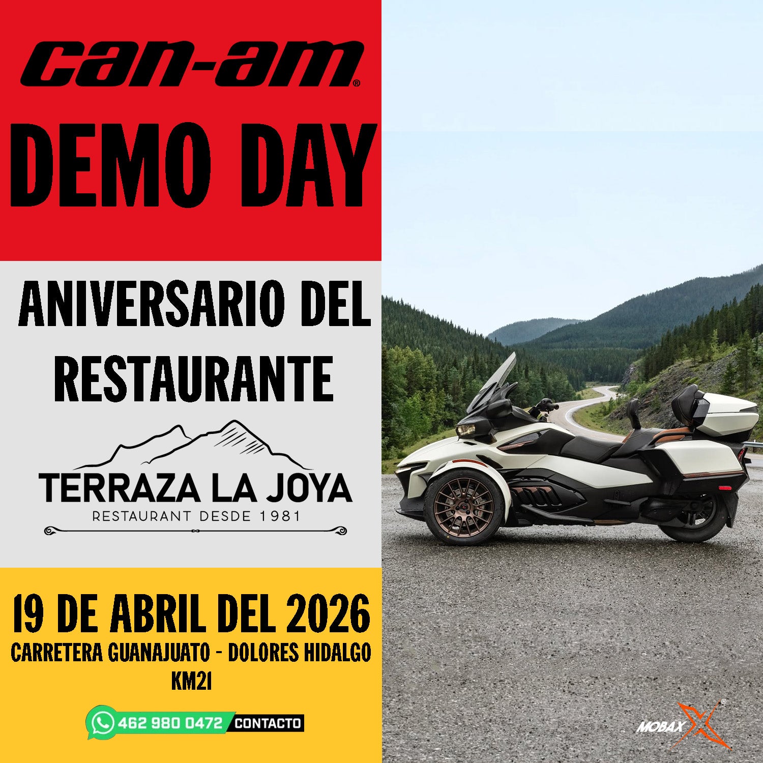 Celebra con nosotros el aniversario de Terraza La Joya con un Demo Day especial. Maneja, disfruta y vive la experiencia Can-Am.